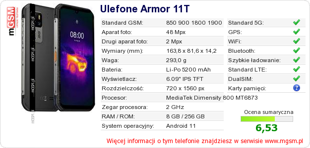 Dane telefonu Ulefone Armor 11T na Twojej stronie