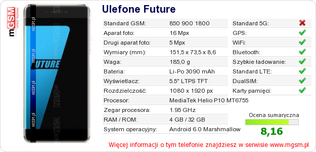 Dane telefonu Ulefone Future na Twojej stronie