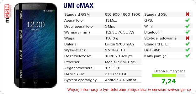 Dane telefonu UMI eMAX na Twojej stronie