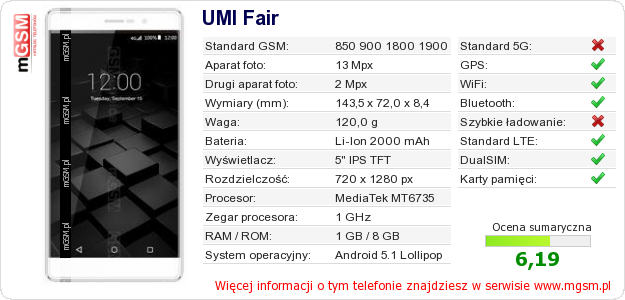 Dane telefonu UMI Fair na Twojej stronie