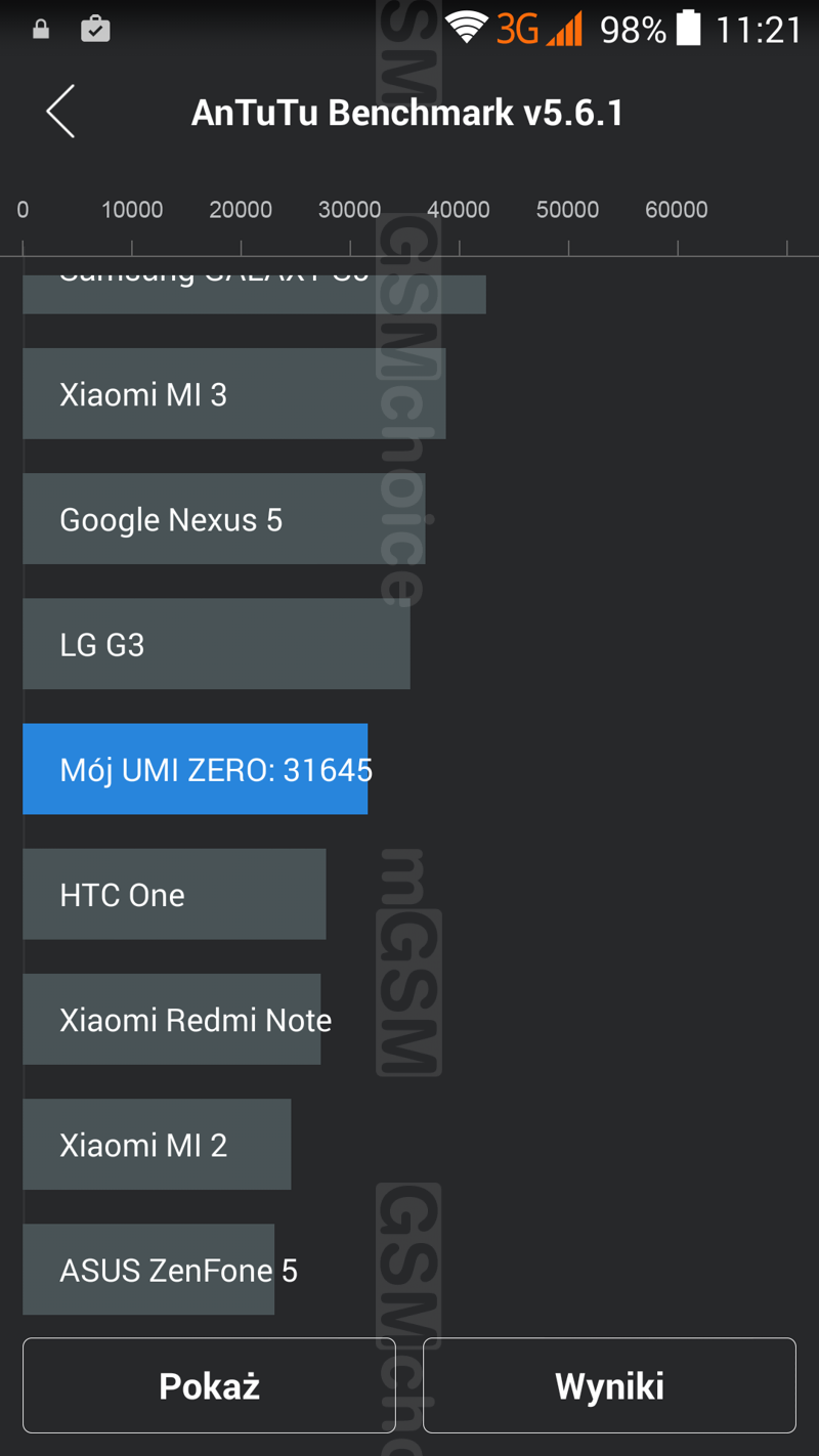 Wyniki benchmarków wyraźnie wskazują, że UMi Zero nie wygra z flagowcami konkurencji, jest słabszy np. od smartfonów z Qualcommem 800. Ale zauważmy, że kosztuje też dużo mniej.