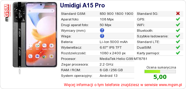 Dane telefonu Umidigi A15 Pro na Twojej stronie