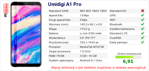 Dane telefonu Umidigi A1 Pro na Twojej stronie