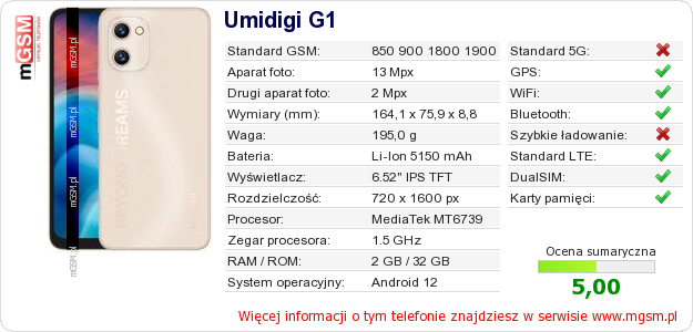 Dane telefonu Umidigi G1 na Twojej stronie
