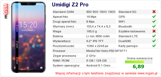 Dane telefonu Umidigi Z2 Pro na Twojej stronie