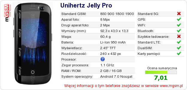 Dane telefonu Unihertz Jelly Pro na Twojej stronie