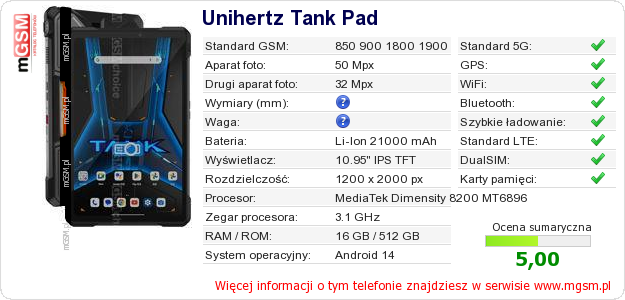 Dane telefonu Unihertz Tank Pad na Twojej stronie