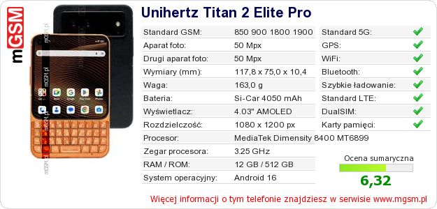 Dane telefonu Unihertz Titan 2 Elite Pro na Twojej stronie