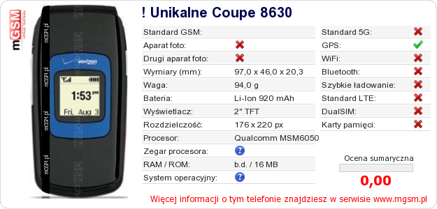 Dane telefonu ! Unikalne Coupe 8630 na Twojej stronie