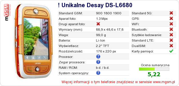 Dane telefonu ! Unikalne Desay DS-L6680 na Twojej stronie