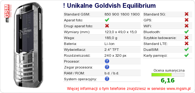 Masz swoją stronę? Chcesz wstawić gdzieś informacje o podstawowych danych telefonu ! Unikalne Goldvish Equilibrium ? To bardzo proste. Możesz pobrać obrazek, lub skopiować i wkleić na stronę poniższy kod:Wklejenie tego kodu spowoduje wyświetlenie poniższego obrazka: