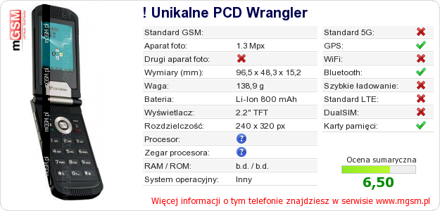 Masz swoją stronę? Chcesz wstawić gdzieś informacje o podstawowych danych telefonu ! Unikalne PCD Wrangler ? To bardzo proste. Możesz pobrać obrazek, lub skopiować i wkleić na stronę poniższy kod:Wklejenie tego kodu spowoduje wyświetlenie poniższego obrazka:
