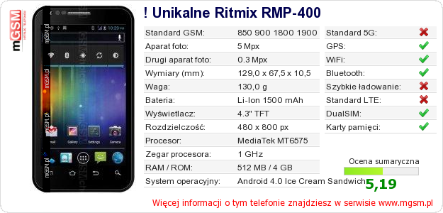 Dane telefonu ! Unikalne Ritmix RMP-400 na Twojej stronie