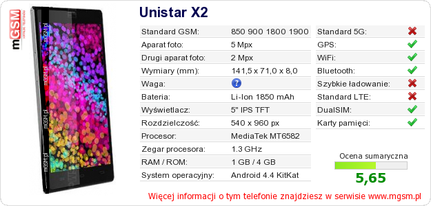 Dane telefonu Unistar X2 na Twojej stronie