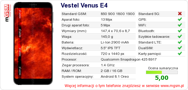 Dane telefonu Vestel Venus E4 na Twojej stronie