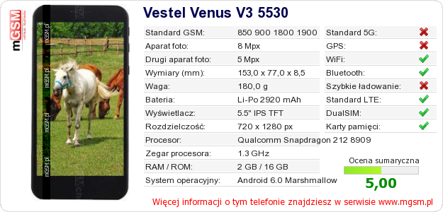 Dane telefonu Vestel Venus V3 5530 na Twojej stronie
