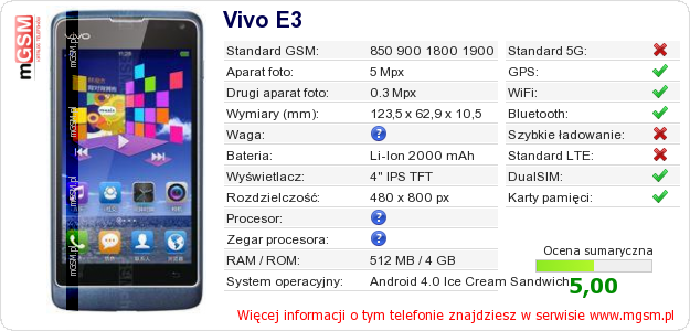 Dane telefonu Vivo E3 na Twojej stronie