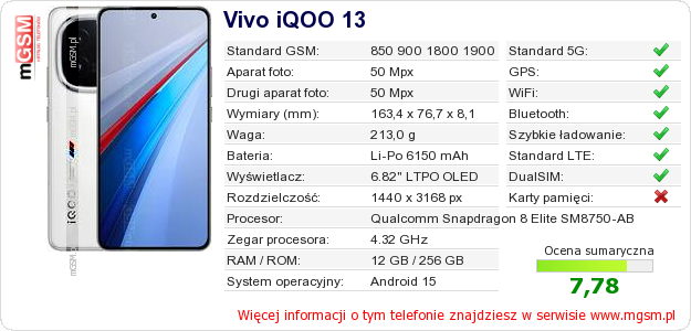 Dane telefonu Vivo iQOO 13 na Twojej stronie