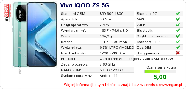 Dane telefonu Vivo iQOO Z9 5G na Twojej stronie