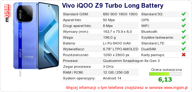 Dane telefonu Vivo iQOO Z9 Turbo Long Battery na Twojej stronie