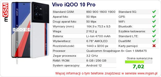 Dane telefonu Vivo iQOO 10 Pro na Twojej stronie