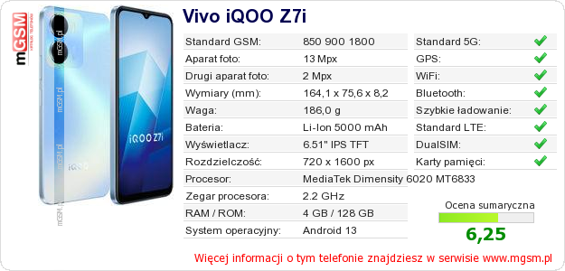 Dane telefonu Vivo iQOO Z7i na Twojej stronie