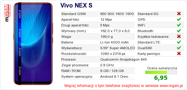 Dane telefonu Vivo NEX S na Twojej stronie