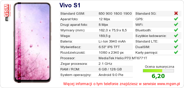 Dane telefonu Vivo S1 na Twojej stronie
