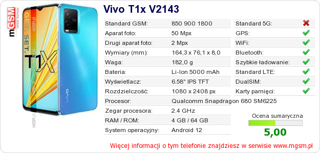 Dane telefonu Vivo T1x V2143 na Twojej stronie