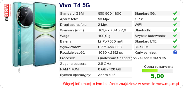 Dane telefonu Vivo T4 5G na Twojej stronie