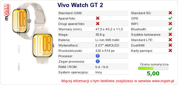 Dane telefonu Vivo Watch GT 2 na Twojej stronie