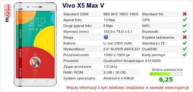 Dane telefonu Vivo X5 Max V na Twojej stronie