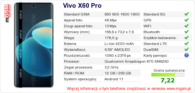 Dane telefonu Vivo X60 Pro na Twojej stronie