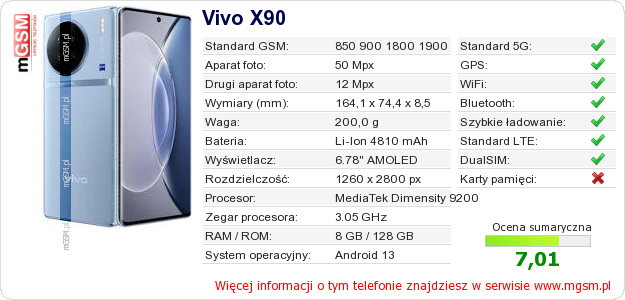 Dane telefonu Vivo X90 na Twojej stronie