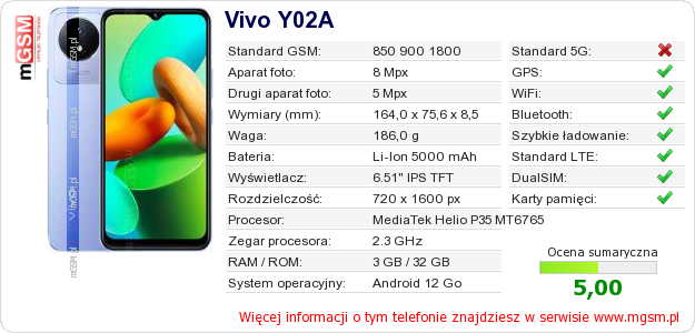 Dane telefonu Vivo Y02A na Twojej stronie