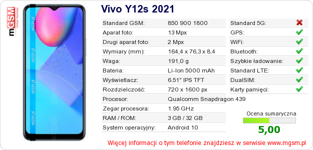 Dane telefonu Vivo Y12s 2021 na Twojej stronie