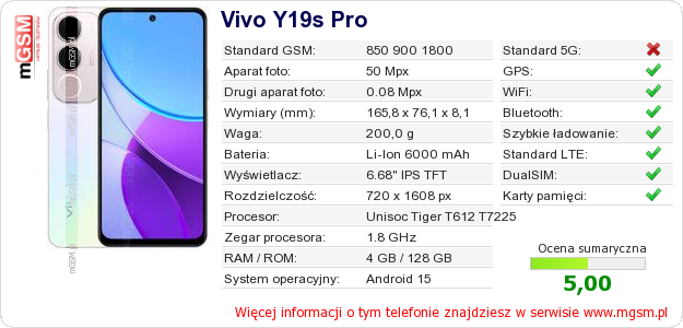 Dane telefonu Vivo Y19s Pro na Twojej stronie