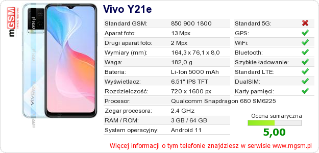 Dane telefonu Vivo Y21e na Twojej stronie