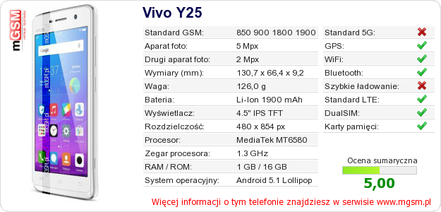 Dane telefonu Vivo Y25 na Twojej stronie