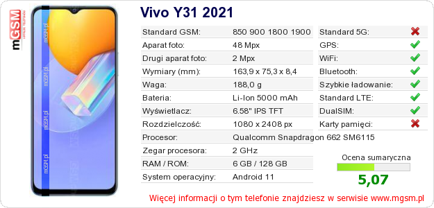 Dane telefonu Vivo Y31 2021 na Twojej stronie