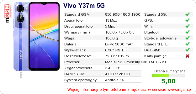 Dane telefonu Vivo Y37m 5G na Twojej stronie
