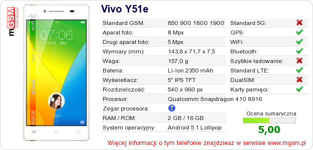 Dane telefonu Vivo Y51e na Twojej stronie