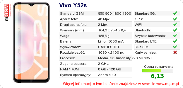 Dane telefonu Vivo Y52s na Twojej stronie