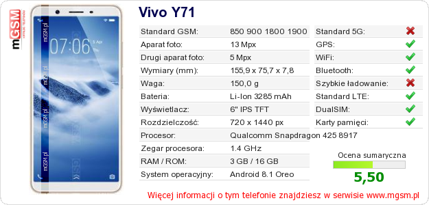 Dane telefonu Vivo Y71 na Twojej stronie