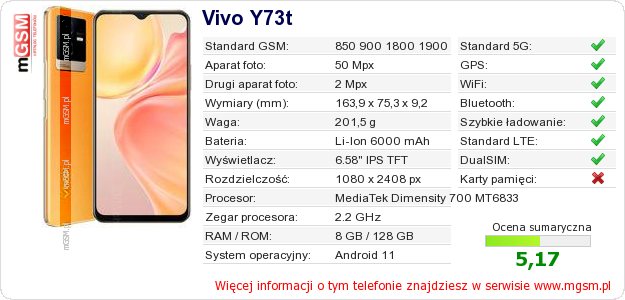 Dane telefonu Vivo Y73t na Twojej stronie