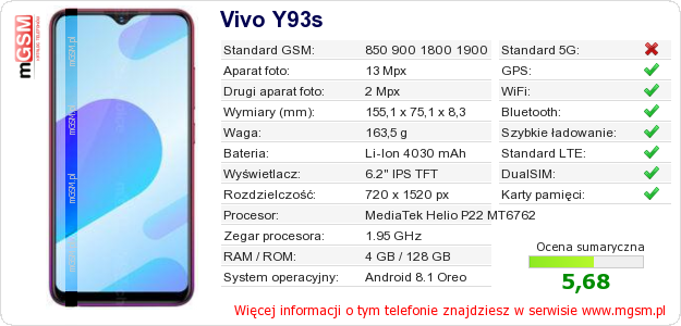 Dane telefonu Vivo Y93s na Twojej stronie