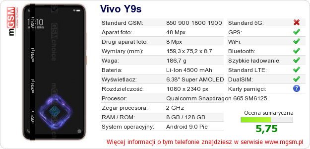 Dane telefonu Vivo Y9s na Twojej stronie