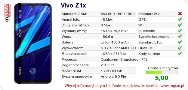 Dane telefonu Vivo Z1x na Twojej stronie