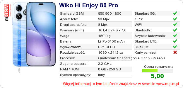 Dane telefonu Wiko Hi Enjoy 80 Pro na Twojej stronie