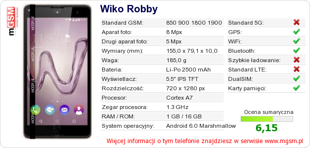 Dane telefonu Wiko Robby na Twojej stronie